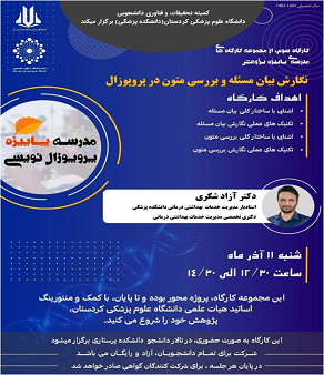 عنوان کارگاه: اهمیت پروپوزال نویسی و آشنایی با فرمت های مختلف آن
