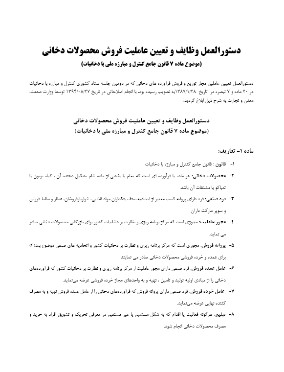 دستورالعمل وظایف و تعیین عاملیت فروش محصولات دخانی |