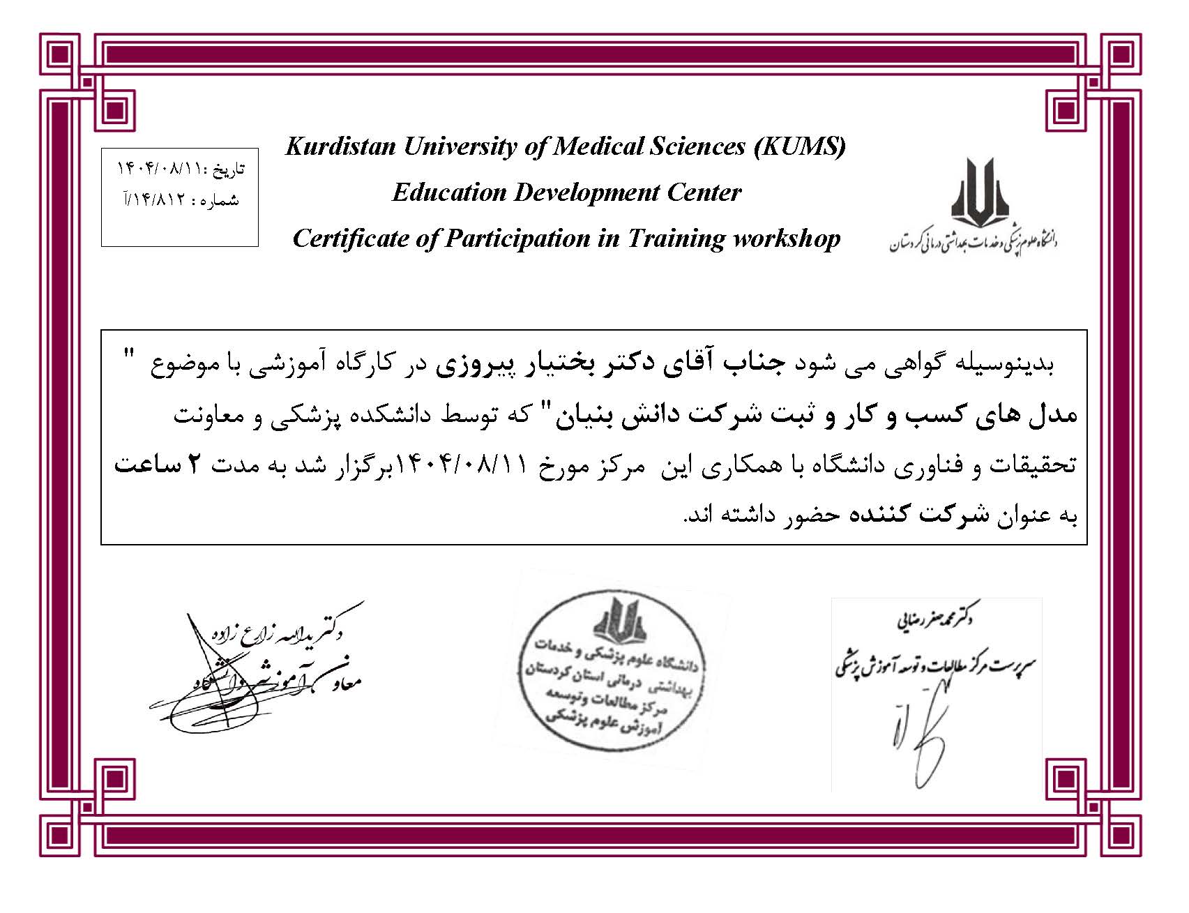 جناب آقای دکتر بختیار پیروزی