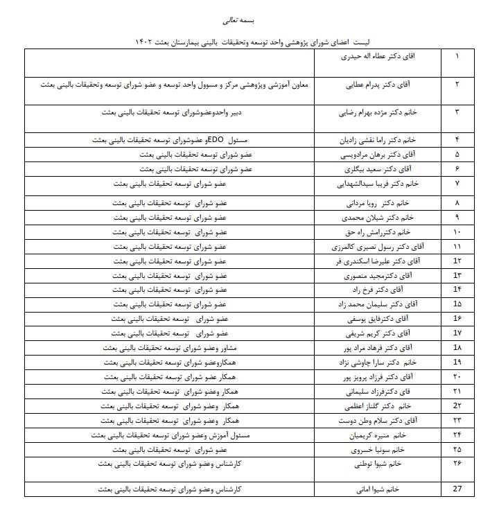 دکتر عطاء اله حیدری رئیس مرکز آموزشی پزشکی بعثت سامانه علم سنجی |